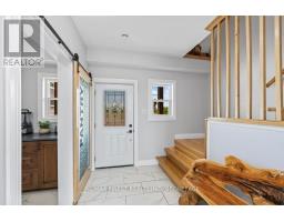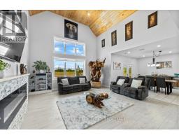 Set on a private 42+ acre parcel, this stunning custom-built home offers a truly unique layout and exceptional space for both indoor comfort and outdoor living. The gourmet kitchen is a standout, featuring in-floor heating, quartz countertops, custom oak cabinetry, black stainless steel appliances including a gas stove, and a convenient dual-access pantry from both the kitchen and front entry. The impressive great room showcases soaring vaulted ceilings, expansive windows with custom electric blinds, built-in surround sound, and a sleek electric fireplace. Patio doors open to a generous deck and a 9x18 stamped concrete pad, ready for your future hot tub. Nature lovers will appreciate the walking trails just beyond the backyard, extending to Caton Road that are ideal for exploring or ATV use. The main-level primary suite offers executive-style comfort with a walk-in closet and a spacious 5-piece ensuite, complete with an extra-long soaker tub and walk-in shower. Upstairs, each bedroom features its own private ensuite, along with a versatile bonus space perfect for a home office, lounge, or recreation area. Function meets convenience with a main floor mudroom/laundry area, powder room, and direct access to the oversized 1,100+ sq ft insulated triple-car garage, including a drive-through bay. Above the garage, a self-contained one-bedroom apartment with separate entrance and parking provides excellent income potential, easily generating approximately $1,500/month. Built with efficiency in mind, the home includes in-floor heating throughout the main level, along with a propane furnace and HRV system servicing the entire property. A second detached 900+ sq ft garage offers even more storage for vehicles, equipment, or recreational toys. Ideally located just 10 minutes from Kingston's west end, with easy access to amenities, schools, shopping, and Highway 401. This property delivers privacy without sacrificing convenience. (id:61594)