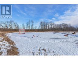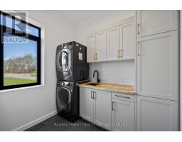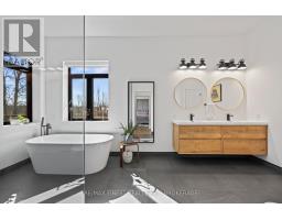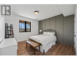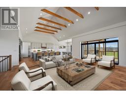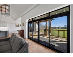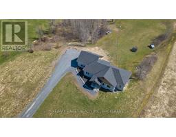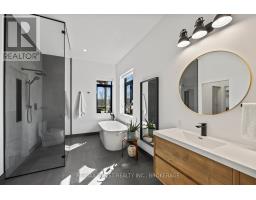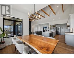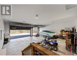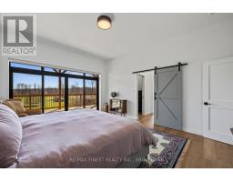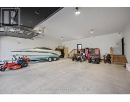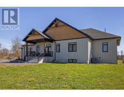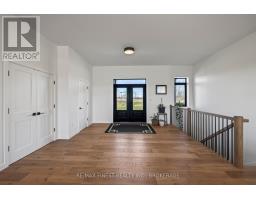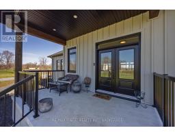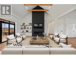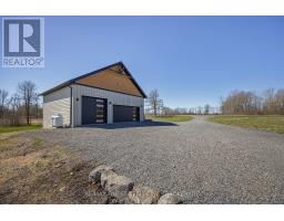 Discover luxury country living at its finest with this breathtaking custom-built bungalow by Reno Kings, offering over 4,500 sq ft of exceptional design on over 4 serene acres. With an ICF foundation extending right up to the trusses and 18-foot cathedral ceilings, this home blends quality craftsmanship with timeless elegance. Step inside to a bright open-concept layout featuring engineered white oak hardwood floors throughout the main level. The spacious living room, centered around a sleek stucco fireplace, effortlessly flows onto a large deck through impressive 12-foot sliding patio doors, ideal for entertaining or unwinding in the fresh country air. Overlooking the peaceful pond, the deck offers the perfect spot to relax and take in the beauty of nature. The chef's kitchen is a dream come true, boasting quartz countertops, a generous island, soft-close cabinetry, and a custom coffee bar. Retreat to the primary bedroom, complete with his-and-hers walk-in closets and a luxurious 5-piece ensuite featuring a soaker tub, double sinks, and a custom glass shower, providing a spa-like experience you'll never want to leave. Also on the main level, youll find a second bedroom, an elegant 4-piece bath, and a chic powder room. A large mudroom with built-in storage and a convenient laundry room offers easy access to the expansive 1,213 sq ft garage, providing ample space for vehicles, storage, and all your toys. The fully finished lower level offers a large rec room, two additional bedrooms, a home office, a gym, and a modern 3-piece bathroom. This home offers high-end finishes, meticulous attention to detail, and country living you've been dreaming of. Don't miss out on this exquisite property and book your showing today! (id:61594)