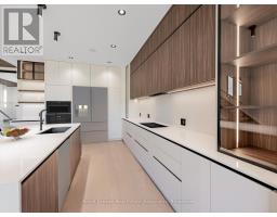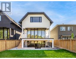 Luxury, perfected. A Montbeck Developments masterpiece yours to move into today! This masterfully designed open-concept home exudes sophistication with white oak flooring, soaring ceiling heights, and floor-to-ceiling windows that flood the interiors with natural light. Seamless indoor/outdoor living is achieved with the living room, dining room, and kitchen each opening to a partially covered balcony patio perfect for year-round enjoyment. At the heart of the home, the bespoke designer kitchen makes a bold statement in both form and function. Outfitted with top-tier Fisher & Paykel appliances, exquisite quartz countertops with full-height backsplash, and an oversized waterfall island, its an entertainers dream. An abundance of thoughtfully integrated storage enhances both style and practicality. The adjoining living and dining spaces radiate sophistication and warmth, featuring custom millwork and a sleek linear electric fireplace that serves as a striking focal point. The primary suite boasts a spa-inspired ensuite with soaker tub, glass shower, dual-sink vanity, and a fully customized walk-in closet with illuminated built-ins and tailored cabinetry. Three additional bedrooms each offer custom desks, built-in closets, and stylish ensuites with designer finishes. The finished lower level expands the living space with a large family/recreation room, 3-piece bath, radiant heated floors, a wet bar, and a rough-in for a home theatre or fitness studio. Additional features include a versatile front room for office or formal living, integrated ceiling speakers, and an attached garage with a striking black-tinted glass door. (id:61594)