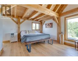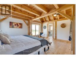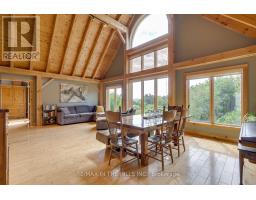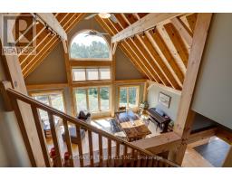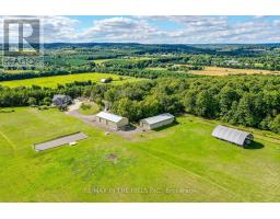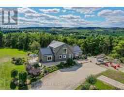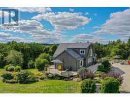 Set on 50 gently rolling acres in scenic Hockley Valley, this exceptional country retreat combines timeless character with rural elegance. The customized Normerica post-and-beam home features soaring ceilings, expansive windows, and an open-concept layout that seamlessly blends indoor and outdoor living/. With four bedrooms (2+2) and 3 bathrooms, the home includes a main-floor primary suite and a fully finished walkout lower level built with 9-foot ceilings. The landscaped grounds are highlighted by a stunning three-tier pond with waterfalls, while extensive decking creates an inviting setting for gatherings or quiet retreats while taking in the spectacular views to the east and west over the valley. Equestrians and hobby farmers will appreciate the 5-stall barn, 30x72 drive shed, and Quonset hut, offering versatile space for animals, equipment, or workshops. Private yet convenient, the property provides easy access to amenities, schools, and major routes-delivering the perfect balance of country living, modern comforts, and breathtaking scenery. Recent exterior updates (2022) include new board-and-batten siding, a durable metal roof, and upgraded exterior doors. A new furnace ensures year-round comfort, and in-floor heating is roughed-in on both the main and lower levels for future efficiency. Located within NVCA jurisdiction but not directly affected, the property offers peace of mind along with the potential (previous approved, but not current) for a secondary dwelling (buyer to do their own due diligence). Please be sure to watch the multimedia display. (id:61594)