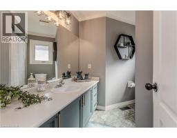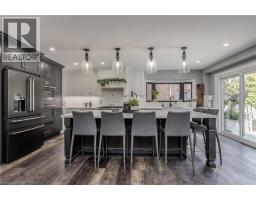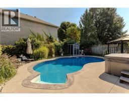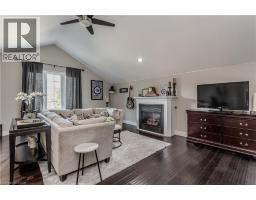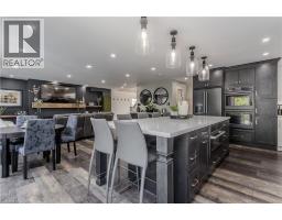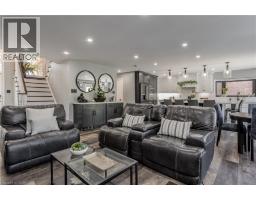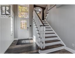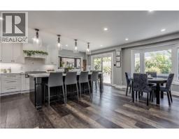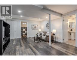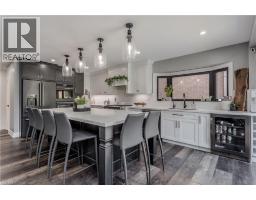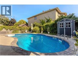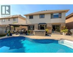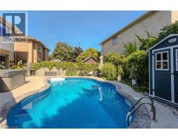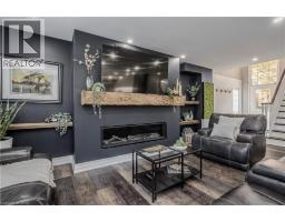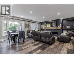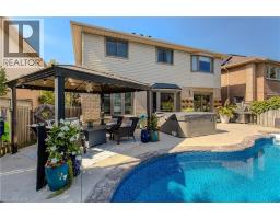 Welcome to this inviting 2-storey home set in a family-friendly Waterdown neighborhood that truly offers a lifestyle location. Perfectly positioned on a school bus route and within walking distance to scenic trails, it invites outdoor adventure right at your doorstep. Just minutes from dining, shopping, major highways, and vibrant downtown Burlington, you’ll enjoy the rare balance of everyday convenience and the tranquility of nature—all in one sought-after community. The professionally landscaped front yard greets you with perennial gardens, mature trees, and a concrete walkway leading to a garage with inside entry. Enter the soaring front foyer with vaulted ceilings, into the main floor, beautifully updated in 2021, featuring an open-concept layout with pot lights and wide plank luxury vinyl flooring that continues into the finished basement. The Living/dining room includes a 63” long contemporary gas fireplace and bay window. Open to the amazing eat-in kitchen boasting custom cabinetry with soft-close drawers, waterfall quartz countertops and matching backsplash, a large island with a breakfast bar, coffee bar/buffet, and top-of-the-line GE Café appliances including double ovens and beverage fridge. Enjoy easy access to the fully fenced, private rear yard including an inground pool, hot tub, gazebo, and gas BBQ hookup. Upstairs, the generous great room above the garage features hardwood floors, fireplace, vaulted ceiling and ample space for relaxation. The second level also includes engineered hardwood floors in all the bedrooms. The primary suite includes a 5PC ensuite. 3 additional bedrooms and a 3PC main bathroom finish the upper level. The finished basement adds additional living space with a recreation/family room, additional bedroom/office and 3PC bathroom with shower. This home also features a water purifier, softener system, extended electrical outlets in the backyard, and recent updates to the pool, driveway, and more. Don’t miss the opportunity! (id:61594)