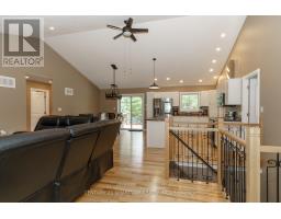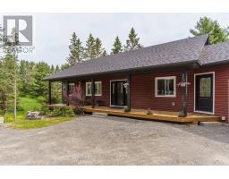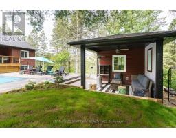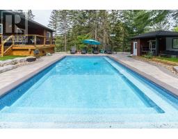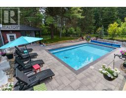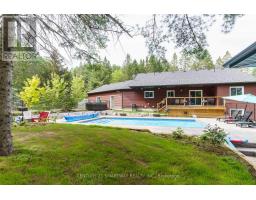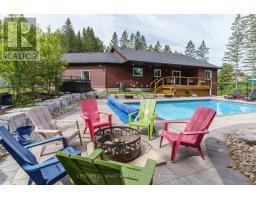 This absolutely Gorgeous and Newer custom/quality build (2022) in town park like setting on a very private 2+ acres well treed lot in Burks Falls. This family Home offers 4 Bedrooms, 3 Full Washrooms, full finished lower level with walkout (in-law potential). Natural Gas ceiling furnace in 32x26'6 attached garage. Municipal services (Sewer & Water), No septic and well. Beautiful In-ground heated salt water pool and private patio with Hot Tub & fire pit area in nicely landscaped rear yard. Road side covered porch and decking poolside. Accessed by scenic private drive , offering ultimate privacy. Close to the health center. shopping, downtown, and recreational facilities. Located within the limits of the Village of Burk's Falls, ( 20 minutes north of Huntsville). Lots of upgrades, MUST SEE HOME!! Also comes with all the existing furniture/electronics/patio furniture (Beds, dressers, sofa sets, dining table, tv's, BBQ, all patio and around the pool furniture etc.) included (As Is Where As). (id:61594)