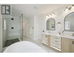 Discover your dream home in the heart of Kitchener's new, family-friendly Trussler West community. Nestled on a quiet street, this exquisite 2,382 sq.ft. residence blends tasteful modern finishes with timeless craftsmanship, creating a truly magnificent living space. From the moment you arrive, the home impresses with its classic brick facade and a double-car garage offering parking for four vehicles. Step into a bright, open-concept main level where 9-foot ceilings & continuous engineered hardwood floors establish a modern, airy atmosphere right from the foyer. The living and dining areas, illuminated by pot lights and chandeliers, create the perfect ambiance for both entertaining guests and quiet family evenings. The heart of the home is the stunning modern kitchen, a chef's delight featuring a large quartz centre island,custom backsplash,extended cabinetry, and stainless steel appliances. From here, slide open the doors to a walk-out deck. A main-floor office provides a quiet space for work or study. Upstairs, the primary bedroom serves as a personal sanctuary,a large walk-in closet, and a luxurious ensuite. Unwind in the elegant soaker tub or the spacious glass shower, and appreciate the privacy of a separate water closet and the convenience of double sinks. Three additional generous bedrooms share a well-appointed 5-piece main bath, thoughtfully designed with a water closet and double sinks to streamline morning routines. The home's potential continues with a large, unfinished basement-a blank canvas awaiting your personal touch. This Net Zero home is future-ready, with rough-ins for solar panels, an electric vehicle charger, and a basement bathroom and bar. Enjoy the perfect balance of tranquil nature, with the trails of Trussler Woods nearby, and commuter convenience, with easy access to Highways 7/8 & the 401. You're also just minutes from major shopping hubs like the Sunrise Shopping Centre. This is more than a house-it's the home you've been waiting for. (id:61594)