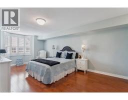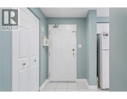 Discover this beautifully maintained 2-bedroom, 2-bathroom condo in one of Ancaster’s most desirable communities. This top-floor suite is flooded with natural light and offers a bright, open-concept layout perfect for both everyday living and entertaining. The living and dining area features a cozy fireplace and coffered ceiling with hidden lighting, while the kitchen is enhanced with quartz countertops, refaced cabinetry, and a remote-controlled skylight. Newer hardwood flooring runs throughout the main spaces, complemented by ceramic tile in the foyer, kitchen, and bathrooms. The spacious primary suite boasts a large soaker tub and excellent storage. Additional highlights include in-suite laundry, ample closet space, a private balcony overlooking the courtyard, locker, and underground parking. Residents enjoy outstanding amenities: a library and meeting room, visitor and underground parking, car wash station, and workshop. All this just steps to shopping, dining, and entertainment, with easy access to the Linc and Highway 403. (id:61594)