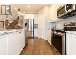 Welcome to this beautifully maintained townhouse offering 2,084 Sqft of modern living space in a highly desirable, family-friendly neighborhood. The open-concept main floor features hardwood flooring, a chefs kitchen with an oversized island, stainless steel appliances (including a brand-new dishwasher), and a walk-in pantry with exceptional storage. The spacious living and dining areas flow seamlessly, perfect for both everyday living and entertaining. Upstairs, you'll find three generous bedrooms, including a bright primary suite with a walk-in closet and stylish ensuite. A convenient laundry room and full bath complete the second floor. The finished basement offers a large recreation room and a two-piece bathroom ideal for movie nights, a playroom, or a home gym. Step outside to a fully fenced backyard with no direct rear neighbors, backing onto St. Benedict School. The yard provides both privacy and open views, with a quiet setting on evenings and weekends, making it ideal for family enjoyment. Perfectly located across from Wazoson Public School and minutes from parks, shopping, and transit, this home combines space, style, and an unbeatable location. Don't miss out on this fantastic opportunity! (id:61594)