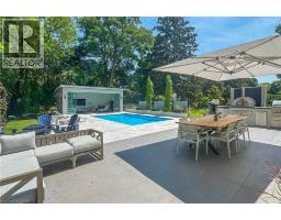 This stunning 2022 custom-built home sits on a deep 50 x 198 ft lot in Burlington’s coveted Aldershot South, containing 4,700+ sq. ft. of refined living space and $500,000 in recent luxury upgrades. Designed for both everyday comfort and entertaining, the main level boasts soaring 10’ ceilings, wide-plank oak floors, Control4 smart lighting, 8-zone Sonos system, and a warm modern great room with custom wall unit and sleek fireplace. The chef’s kitchen features top-tier appliances, a built-in bar/servery with crystal glassware display, and seamless access to the covered patio with fireplace. Upstairs, the boutique-style primary retreat offers a private balcony and spa-inspired 5-piece ensuite with skylight, glass shower, soaker tub, heated towel rack, and automated heated toilet with bidet, complemented by three additional bedrooms and two baths. The fully finished lower level showcases a French-inspired custom bar, designer +/-60-bottle display, 1,100-bottle temperature-controlled wine cellar, spacious recreation area, and a private entrance ideal for an in-law or nanny suite. Outdoors, a resort-like oasis awaits: in-ground swimming pool with motorized cover, porcelain-tiled pool-deck, cabana lounge, Sonance speakers, landscape lighting, and a luxury outdoor kitchen with DCS grill, cabinetry, fridge, and Bella pizza oven. A 2 car garage with heated epoxy finished flooring and driveway parking for 8 completes this exceptional property. Close to top-rated schools, parks, waterfront, downtown Burlington, and GO access, this residence blends modern sophistication, smart-home technology, and resort-style living. (id:61594)