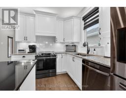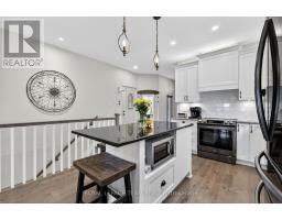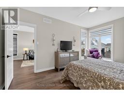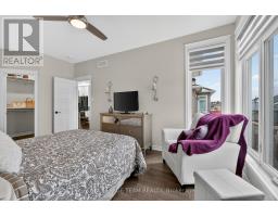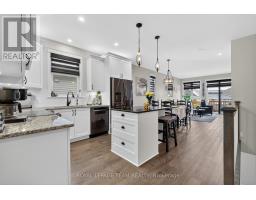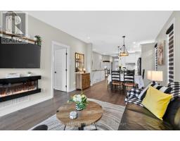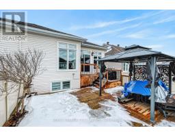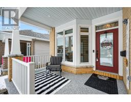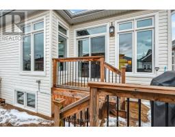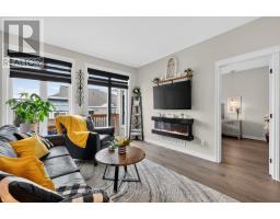 98 Kayenta Street. Tamarack Homes 'Dove' model. Premium end unit with 'lookout' basement and tasteful upgrades added at the time of construction. Southern exposure is flooded with natural light. Maintenance free exterior with full rear yard deck, lighting and covered gazebo. (artificial grass for puppy in side yard with access gate to fully fenced yard) Open concept main level with upgraded railing, wide plank engineered flooring, Granite kitchen counters plus Black Quartz island with pendant lighting and a breakfast bar. LED pot lighting added. Fridge has both water & ice. Living room fireplace is electric. Patio doors lead to the rear yard deck with gas BBQ connection. Main floor study located at the front door. Main level powder room. Main level laundry closet connections for stacked units. (full basement laundry room with built-in cabinetry and tile floor. Primary bedroom has engineered hardwood flooring, pendant lighting, ceiling fan, walk-in closet and overlooks the rear yard. Luxury ensuite has been upgraded to a walk-in shower with glass door, tile flooring and a large vanity with granite counter top. 2nd bedroom in lower level with look out egress window and walk-in closet. Full bathroom with a bathtub, upgraded counter top and vessel sink. Builder finished recroom with pot lighting and 2nd egress window. Over $40K in upgrades. (id:61594)