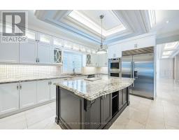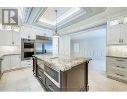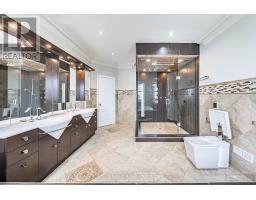 Executive luxury residence situated on a premium corner lot in prime Thornhill Woods Built in 2009 & recently upgraded throughout this home offers 5,124 sq. ft. of living space 8 bedrooms & 7 bathrooms combining elegant design modern technology and outstanding income potential Striking brick and stone façade w/double-door entry & new stone stairs dramatic 2 storey foyer w/crystal chandelier Bright & spacious principal rooms 9' smooth ceilings pot lights waffle ceilings w/integrated lighting wainscotting crown mouldings oversized baseboards & a 2-sided gas fireplace heated marble flooring throughout main & lower levels & heated flooring in upper bathrooms Open concept living/dining areas ideal for entertaining complete w/walk-in coat closet & powder room w/floating vanity designer mirror & lighting Custom chef's kitchen w/large centre island granite countertops designer backsplash soft-close cabinetry w/pull-out drawers undercabinet lighting undermount sink & premium appliances including Wolf gas stove w/oven Built-in double ovens & microwave Sub-Zero fridge & wine cooler Asko dishwasher KitchenAid warming drawer & hood fan. Family room w/walk-out to deck surround sound wiring & projection TV/screen wiring Elegant wrought-iron circular staircase w/crystal chandelier leads to upper & basement Upper level features wide landing w/Romeo Juliet balcony 2 linen closets & 4 generous bedrooms Primary suite includes double-door entry custom walk-in closet & spa-inspired ensuite w/double vanity jacuzzi tub w/lighting oversized steam shower w/multiple jets & Kohler Numi smart bidet system Secondary bedrooms offer walk-in or double closets w/semi-ensuites & private ensuites (id:61594)
