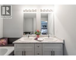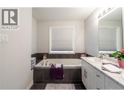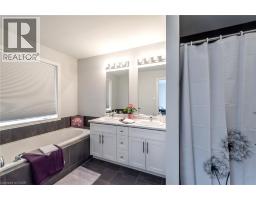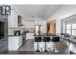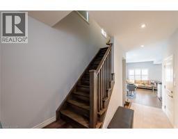 This pristine, meticulously maintained 3 bdrms, 2 1/2 bath, town-home features modern and stylish finishes, located in one of most sought after sites “Shoreview Place”. Welcoming contemporary open-concept main floor provides vibrant space featuring elegant 9ft ceilings, luxury living room boasting stylish stone wall, engineering hardwood flooring, California shutters, pot lights, & high-end finishes. Modern open concept kitchen features upgraded extended white cabinetry, stainless steel appliances, granite countertops, large island with double sink, backsplash and ample cupboard space. An elegant oak staircase leads upstairs to second level with bedroom level laundry. Spacious primary bedroom features a 5-piece ensuite with separate shower, upgraded tiles, along with walk-in closet and large window for loads of natural lighting. 2nd floor also features 2 additional bedrooms and 4-piece main bath. An unspoiled basement with rough-in bath allows freedom to finish to your taste and style. Fantastic location in the desirable Stoney Creek lakefront community with steps to spectacular views of Lake Ontario. You can also take a walk along the Waterfront Trail or dip in the lake from the beach strip located just steps from a complex. End unit with easy access through side to spacious back yard. Minutes from city amenities, QEW access, schools, shopping, restaurants, parks, Walmart power centre and GO Confederation Station. Pictures taken before current resident moving in. RSA. (id:61594)