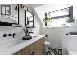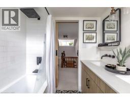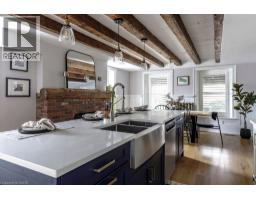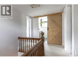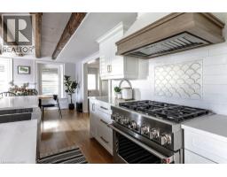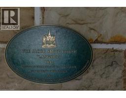 Welcome to Langside, also known as the historic Jacob Smith House, a beautifully restored stone farmhouse built in 1847 and set on an expansive 104 x 280 ft lot (almost 3/4 of an acre) at the edge of the Niagara Escarpment. Rich in Loyalist history, this landmark home blends Neo-Classical architectural details with thoughtful modern upgrades (2021) completed by Heartwood Renovations. Inside, engineered hardwood floors, exposed beams, and original character elements pair seamlessly with a chef-inspired kitchen featuring quartz countertops, gas range, premium appliances, a large island, and walk-in pantry. Multiple living spaces include two gas fireplaces, a bright rear family room, and a main-floor laundry with built-in storage. Upstairs provides spacious bedrooms with built-ins, including a sun-filled primary suite. Additional features include central vacuum, attached one-car garage with inside entry and ample storage. Enjoy peaceful farmland views from the covered front porch, a timeless property featuring privacy, character, and enduring craftsmanship. (id:61594)
