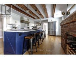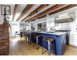 Welcome to Langside, also known as the historic Jacob Smith House, a beautifully restored stone farmhouse built in 1847 and set on an expansive 104 x 280 ft lot (almost 3/4 of an acre) at the edge of the Niagara Escarpment. Rich in Loyalist history, this landmark home blends Neo-Classical architectural details with thoughtful modern upgrades (2021) completed by Heartwood Renovations. Inside, engineered hardwood floors, exposed beams, and original character elements pair seamlessly with a chef-inspired kitchen featuring quartz countertops, gas range, premium appliances, a large island, and walk-in pantry. Multiple living spaces include two gas fireplaces, a bright rear family room, and a main-floor laundry with built-in storage. Upstairs provides spacious bedrooms with built-ins, including a sun-filled primary suite. Additional features include central vacuum, attached one-car garage with inside entry and ample storage. Enjoy peaceful farmland views from the covered front porch, a timeless property featuring privacy, character, and enduring craftsmanship. (id:61594)