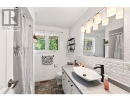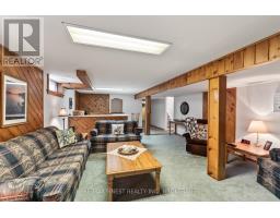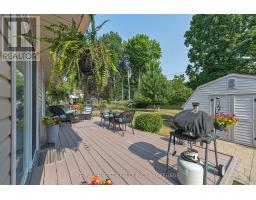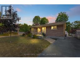Pride of ownership is evident throughout this all brick bungalow nestled in Bayridge West, known for its relaxed environment and green spaces. The home highlights several updates including custom cabana kitchen cabinets with granite countertops and eating bar, perfect for casual meals. Dining area with patio door to a 10 x 24 deck and a sunshine filled living room. The main level features three bedrooms, including a spacious primary bedroom with convenient cheater access to the 4 pc bath. Newer pre-engineered hardwood floors on the main level. Grand sized rec room with free standing gas stove, perfect for cold winter nights and family gatherings. The basement rounds out with a bonus 4th bedroom, and 2pc bath. Lovely landscaped level and fenced back yard with a 12 x 12 shed for extra storage. New shingles and central air 2022, updated electrical panel, windows and a stamped concrete sidewalk add value to this turn key home. If interested in exceptional value see this property today. (id:61594)