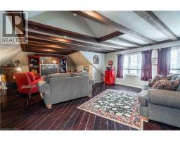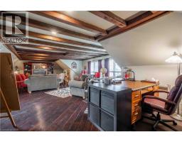 Here is your opportunity to own one of Caledonia’s notable homes. Enjoy this lovely home is surrounded by gardens & shady green space. Until recently, it was also the location of The Proper Topper Bridal shop -undergoing a metamorphosis to become a lovely family home which can be used for a home-based business. The owners have thoughtfully transformed this home while respecting it’s past. Boasting large principal rooms, light-filled rooms embrace a modern esthetic with neutral colours & lovely restored floors and/or engineered wood floors (carpet-free home!). Main level boasts a chef style kitchen, updated bath & incredible living room anchored with a whitewashed brick fireplace & refinished hardwood. Main floor laundry with newer washer/dryer. (Laundry hook-ups also on second level.) Restored bonus room for office or playroom. 2nd floor can be accessed by one of two staircases & has 3 generous sized bedrooms & a loft plus renovated bath with clawfoot tub & fully tiled shower. The showstopper is a double sized master bedroom oasis with windows overseeing backyard with mature shade trees. A 3rd level is a unique family room or private office with beamed ceilings, skylight, wooden floors & windows affording a view towards the Grand River. Many improvements: upgrades to all bathrooms, most newer windows, dramatic entrance door with sidelights, new wide baseboards, subway tile backsplashes, new & restored flooring, new light fixtures & pot-lighting. Building upgrades: metal roof, newer appliances, new sump pump & drainage system in basement, recent all owned furnace, water heater & AC. You will appreciate that there are no popcorn ceilings here! Offering a place of calm in a busy world. Kick back on your cedar deck, walk to local grocery & restaurants. Stroll along the river walk or visit Jones Bakery. This home has it all! (id:61594)