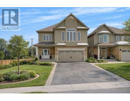 Stunning 4-bedroom home on a rare pool-sized pie-shaped conservation walk-out lot backing onto a peaceful stream, forest, and walking trails, offering exceptional privacy and views in the highly sought-after Grange Hill neighbourhood of Guelph. The impressive lot features approximately 72 ft frontage with depths of 176/115 ft. Offering over 2,840 sq ft of thoughtfully designed living space plus an unspoiled walk-out basement ready to finish to your liking, complete with large windows and a 3-piece bath rough-in. The open-concept main floor features 9 ft ceilings, hardwood floors, and generous living and dining areas ideal for everyday living and entertaining. The stylish kitchen offers quartz countertops, a centre island, walk-in pantry, and a bright eating area overlooking the forest. A powder room completes the main level, along with a well-designed mudroom featuring inside access to the garage, main floor laundry, and a convenient dog spa. Upstairs includes a bright family room with cathedral ceilings and pot lights, 4 spacious bedrooms including a guest room with 4-piece ensuite, and a primary retreat with walk-in closet and spa-inspired ensuite offering a large glass-enclosed tiled shower, soaker tub, double vanity, and quartz counters. Exterior highlights include a double driveway and a professionally landscaped side yard with stone stairway featuring a perennial-lined path, with over $60k invested in professional landscaping and deck; summer photos from the sellers have been added to showcase the outdoor space. Ideally located close to parks, trails, schools, shopping, public transit, and with easy access to major routes and Highway 7 for commuters, this home offers an ideal blend of nature, space, and convenience. (id:61594)