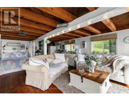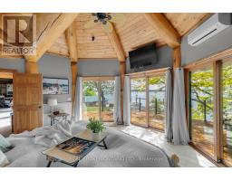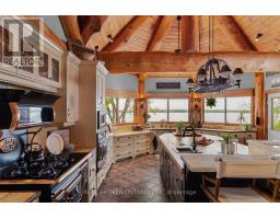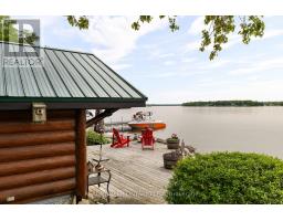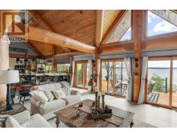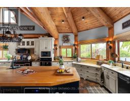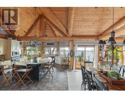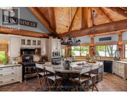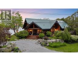 Welcome to 'Four Winds', one of Orillia's most exceptional waterfront properties located on Lake Simcoe. Situated on a rare 206 feet of private shoreline, this 2005-built round log home by Moonstone Timberframe with almost 5000 square feet of finished living space, offers timeless craftsmanship, remarkable design, and panoramic lake views from nearly every room. West-facing exposure delivers unforgettable sunsets, while the setting near the narrows connecting Lake Simcoe and Lake Couchiching offers incredible access to the Trent Severn Waterway and year-round enjoyment. Inside, a 30-ft vaulted great room showcases true log construction and stunning stonework around the gas fireplace. The chefs kitchen is a showpiece with an oversized island, high-end Elmira Heritage appliances, and wraparound views of the lake. The main floor primary suite features a 5-piece ensuite, walk-in closet, in-suite laundry, and private access to the expansive glass-railed deck overlooking the lake. Upstairs, a spacious open loft currently functions as a lounge and home office, originally designed to accommodate 2 additional bedrooms and a full bathroom. The fully finished walkout basement includes in-floor heating throughout, an entertainers bar, media room, two large guest bedrooms, full bathroom with laundry hookup, and access to a screened-in porch and covered patio. At the waters edge, a 458 sq ft finished boathouse bunkie with waterfront deck offers additional guest space. The 1,289 sq ft heated garage/workshop easily stores up to a 38-ft boat plus 2 vehicles. On the water, enjoy a 60ft cantilever dock, large observation deck, boat rail system and additional floating dock. Just 10 minutes to Orillia, under an hour to Muskoka, and only an hour from the GTA, this is lakeside living at its absolute finest. See agent website for info, additional photos and floor plans. (id:61594)