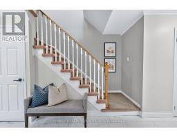 Gorgeous upgraded 3 bedroom, 4 bathroom all brick townhome. Meticulously maintained and rarely offered in this desirable area. Featuring a bright and spacious open concept main floor with a welcoming foyer, gleaming porcelain flooring, and 2piece bath. The fabulous eat in kitchen offers an extra built in pantry, double sink, built-in dishwasher, backsplash. Enjoy the convenience of main floor laundry with side yard access. The open living and dining area is filled with natural light from large windows and showcases rich toned flooring, crown moulding, and pot lights. Walk out to a fully fenced backyard with a large deck and stepping stone pathway. The generous primary bedroom features a walk-in closet, and a 4 piece ensuite. The finished basement includes a 2 piece bath, recreation room, and office area perfect for additional living space. Close To Schools, shopping, Transits and HWYs. (id:61594)