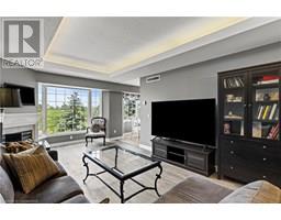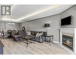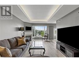 $770.28 MonthlyWelcome to Unit 301 at 990 Golf Links Road — where comfort, space, and convenience come together in one of Ancaster’s most beautifully maintained condo buildings. This spacious 2-bedroom, 2-bathroom unit feels more like a bungalow than a condo, offering a layout that’s both functional and inviting. Step inside to a large foyer and notice the wide plank luxury vinyl floors (2024) that flow seamlessly throughout the home. Sunlight pours in through oversized west-facing windows, offering calming views of the lush greenery that surrounds the complex — a rare and peaceful backdrop. The kitchen features granite countertops, stainless steel appliances, and a charming dinette with a picture window looking out to nature. The gas fireplace adds warmth to the living space, while the formal dining room provides the perfect setting for hosting family and friends. Step out onto the extra-large balcony and enjoy the natural scenery — a perfect spot to relax and unwind. The primary bedroom retreat includes two closets, access to the balcony, and a spacious ensuite with double sinks. You’ll also find in-suite laundry, plenty of storage, and an owned parking space right next to the elevator, plus a private locker and ample visitor parking. This quiet, meticulously cared-for building also offers a car wash bay, workshop, and party room — and the location couldn’t be more convenient. You're just steps to shops, restaurants, grocery stores, public transit, and quick highway access, making daily errands and weekend outings effortless. Enjoy low-maintenance living in a vibrant yet peaceful setting — welcome to your next chapter in Ancaster. (id:61594)