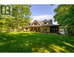 Remarkable Muskoka lakeside retreat on Six Mile Lake, on year-round municipal road, only 90 minutes from GTA. Impressive custom-build w/stunning lake views may be most prestigious property on “the mile.” Expansive 333ft of prime, deep waterfront, 1.66 acres w/mature trees & privacy, & absolute show-stopper 6000sqft, 6 bedrm lake house w/gorgeous pine detail T/O. Open-concept main lvl overlooks lake & accesses the 68x12 covered deck, includes the kitchen w/quartz CTs & 11ft centre island w/breakfast bar, great rm w/granite stone F/P & 22ft vaulted ceiling, spacious dining rm, main floor primary bedrm w/6pce ensuite, Muskoka rm, 2pce bath, & mudrm/laundry rm. 2nd lvl has a den/office, & 2 very large bedrms that could be converted to 4 if desired. Walk-out lower lvl offers a family rm w/granite stone F/P, bar area w/seating for 6, 3 more large bedrms, 8pce bath, & sliding doors to patio & lake. Red Pine & slate floors T/O, 10ft ceilings & in-floor heating on main & lower lvl, pine ceilings, & post & beam construction & ICF foundation, all display the care in this magnificent homes design. Exterior offers an oversized double garage w/600sqft man cave/loft w/heat & AC, triple garage w/2 insulated & heated, & another single garage at side of property, plus parking for 20 more on driveways. Clear & pristine waterfront 6-12ft deep off docks, + bonus shallow wading area at side. 1500sqft of decks & docks along water, including U-shaped boat slip engineered to support a boathouse, plus 1400sqft of covered deck & patio overlooking the water, & 450sqft of deck at back of home, totalling over 3350sqft of decking & patio. NE exposure at waterfront provides beautiful sunrises & sunsets. 280sqft bunkie at water’s edge. Systems include geothermal heating/cooling, drilled well w/complete water system, bio-filter septic system, on- demand water heater, & generator. Contact listing Realtor or any Realtor for floor plans, boathouse drawings, & for full write-up & details of property. (id:61594)