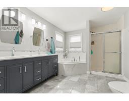 Welcome to this exceptional, beautifully renovated home offering approx. 3,400 sq. ft. of living space, featuring 4 bedrooms + LOFT, main floor DEN, 3.5 bathrooms & a finished basement with full bath. Ideally located in a sought-after, family-friendly neighbourhood within walking distance to parks, schools & amenities. A welcoming foyer with ample closet space leads to a thoughtfully designed main level showcasing rich hardwood & ceramic flooring throughout. Elegant formal living & dining rooms flow seamlessly-perfect for both entertaining and everyday living. At the heart of the home is the stunning 2022 RENOVATED CHEF'S KITCHEN, complete with a centre island, walk-in pantry, and a bright eat-in area with patio doors opening to a private deck and fully fenced yard-ideal for summer enjoyment. The adjoining family room features a striking stone fireplace, creating a warm and inviting space. A stylish powder room, dedicated main floor office with designer ceiling detail, and inside entry to the double garage complete this level. The beautifully updated curved staircase (2022) leads to the second level, offering a spacious primary retreat with walk-in closet and a RENOVATED 5-piece ensuite with double sinks and corner soaker tub. Three additional bedrooms, an updated main bath (2022), and convenient laundry add functionality, while the loft provides versatile bonus space. The finished lower level features a large recreation room, multi-purpose room (currently bedroom), full 3-piece bath, and ample storage. Updates include roof (2019), select windows (2019), kitchen (2022), bathrooms (2022), and staircase (2022). A perfect blend of space, style, and location for modern family living. (id:61594)