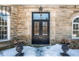 A rare four-acre country retreat 5 minutes from Milton and Highway 401. This distinguished solid cut-limestone 2.5-storey century home (c.1890s) blends historic character with exceptional natural surroundings, offering privacy, charm, and convenience in one remarkable property. Set on 4.1 acres backing onto protected ravine, the property provides peaceful views and a true sense of country living while remaining only minutes from town amenities and major commuter routes. Inside, the home offers five bedrooms and three bathrooms, with original millwork and sun-filled rooms overlooking the picturesque grounds. Freshly painted interiors in a soft neutral palette enhances the home's warmth and timeless character. A brand-new electric heat-pump HVAC system (2026) provides efficient year-round heating and cooling with modern performance and reduced operating costs. Additional recent improvements include a custom front door (2025) and new basement door (2026). The expansive parcel features generous frontage and two existing driveways, offering flexibility of use and long-term potential. Perfect for families and pet owners, the property includes an invisible perimeter fence system, allowing dogs to safely roam across the acreage. Adding to its appeal, the home benefits from exceptionally low annual property taxes of approximately $5,536, supported by the Conservation Land Tax Incentive Program. (id:61594)