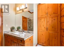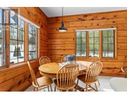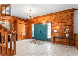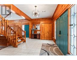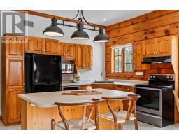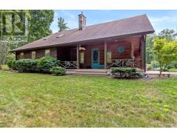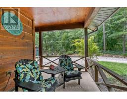 Seize this opportunity to own a piece of history in beautiful Port Franks! This picturesque log cabin is nestled on a mature treed lot and features all the conveniences of modern day living. The generous main floor boasts a cozy dining/sitting room with exposed beams, hardwood flooring and gas fireplace; double height family room with log interior walls, vaulted ceilings, sky lights, grand wooden open riser staircase, and gas fireplace; eat in kitchen with updated appliances (2019) and island with breakfast bar; updated bathroom and large foyer. The upper level boasts full views of the family room with updated main bathroom including tiled shower with glass enclosure, double sinks and stand alone soaker tub and 3 generous bedrooms including primary with vaulted ceilings, double closets and sky light. The entire home is surrounded by wrap around porches and decks with stunning landscaping and hot tub all with privacy from the mature trees. The expansive treed lot spans 198 ft front by 247ft depth. Large triple car detached garage is perfect for parking or hobbiest. Outdoor features include generous driveway with room for RV/boat parking, fire pit, irrigation system (2020), and 2 sand points which provide water for the lawn and gardens. Luxury vinyl flooring (2022), painted (2022), electrical for hot tub, and electrical for generator. Wonderful location being walking distance to 3 marinas, community centre, playground, trails and library and in close proximity to private Port Franks beach, golf coarse and restaurants. (id:61594)