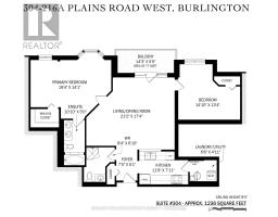 $663.14 MonthlyWelcome to A304-216 Plains Rd. W. in Aldershots Oaklands Green a quiet, well-managed, and highly sought-after condominium community.This bright and spacious 1,236 sq. ft. 2-bedroom, 2-bath suite offers an inviting south-facing layout filled with natural light. Recent laminate flooring (2024) enhances the living areas, while the bay window and arched transom windows create a warm, airy atmosphere.The generous living/dining room opens through terrace doors to a private balcony overlooking the gardens. The primary bedroom comfortably fits a king-size bed and includes a walk-in closet and a 5-piece ensuite. A well-proportioned second bedroom works perfectly for guests or as a home office. The galley kitchen features stainless steel appliances, and the unit includes in-suite laundry plus a main bath with a separate shower for added convenience. A storage locker and 1 underground parking space are also included.Residents enjoy a pet-friendly (with restrictions), non-smoking complex with a welcoming community centre, complete with a party room, games room, and library.The location is exceptionalwalk to Lake Ontario, LaSalle and Hidden Valley Parks, and enjoy easy access to GO Transit, restaurants, shopping, the RBG, and major highways.Dont miss this opportunitybook your private showing today! (id:61594)
