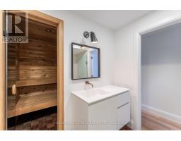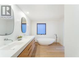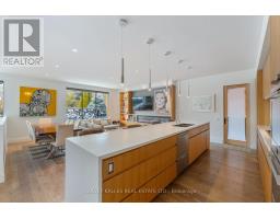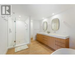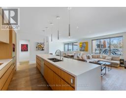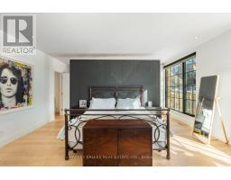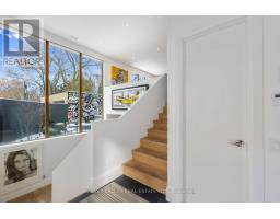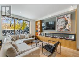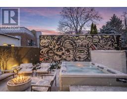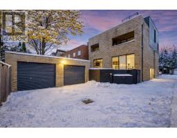 An exceptionally rare offering in a boutique two-residence property in the heart of Toronto's prestigious Forest Hill Village. Designed with a distinct New York ultra-chic loft aesthetic, this 4-bedroom, 4-bathroom home blends architectural edge with refined comfort.A bold façade with oversized black casement windows sets the tone. Inside, soaring ceilings, expansive glazing, and an open-concept layout create dramatic volume and natural light throughout. Wide-plank hardwood floors, clean lines, and curated high-end finishes deliver a true downtown loft feel - sophisticated, modern, and warm.The main living level is a showpiece where kitchen, living, and dining flow seamlessly in a bright, airy expanse ideal for entertaining. The chef-inspired kitchen features built-in stainless steel appliances, quartz countertops, and a substantial island designed for gathering. It offers the energy of a Tribeca-style loft with the functionality required for everyday family living.The upper level includes a private primary retreat along with additional living space, thoughtfully integrated to balance openness with privacy. The primary suite is serene and spacious, complete with a spa-like ensuite featuring a double vanity and sleek glass shower.Generously sized additional bedrooms make this home equally compelling for downsizers seeking turnkey luxury without compromise, or for larger families who appreciate design-forward living with flexibility.The lower level provides a comfortable rec room, sauna, and versatile space for media, fitness, or guests.Outdoors, the landscaped backyard oasis offers year-round enjoyment with a hot tub, seating areas, and lush greenery - anchored by the commissioned mural Creative Chaos (August 2023) by world-renowned Brazilian artist Elvis Mourao, dramatically bottom-lit against brick.Private parking completes this rare lifestyle opportunity steps from top schools, boutique shops, and the charm of Forest Hill Village. (id:61594)