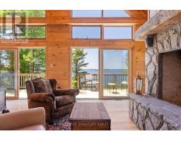 Welcome to Echo Island, your very own 16-acre sanctuary on the stunning Georgian Bay, boasting 1280 feet of sunset-exposed shoreline. Picture-perfect dotted island views, wind swept pines, and your own private beach make this an idyllic escape for swimming, playing, and unwinding. Perched atop a scenic hill, the magnificent 4000+ square foot post and beam cottage awaits. Designed with entertaining in mind, it features a grand dining table that seats 12, plus extra cozy seating in the kitchen nook. The floor-to-ceiling windows and doors frame the views impeccably, while the spacious deck is ideal for soaking in those breathtaking panoramas. Three magnificent stone fireplaces add to the cottage's ambiance, providing warmth during those cool shoulder seasons. Imagine the sound of a crackling fire as you make unforgettable memories with your loved ones. The Muskoka room offers a serene retreat for curling up with a good book or additional space for entertaining guests. The principal suite is a true haven, complete with its own sliding glass door to the deck and an elegant 5-piece bath featuring a luxurious jet tub. With three additional bedrooms and two more bathrooms, there's plenty of room for family and friends. Echo Island also includes a charming post and beam Guest cottage, fully equipped to welcome guests or extended family members. The large dry boathouse is a marvel in itself, complete with a 2-piece bathroom, washer, and dryer. Navigating to your island paradise is a breeze with a protected cove and a dock capable of accommodating boats up to 70 feet. Nestled in the heart of Sans Souci and Copperhead Cottage Association, Echo Island offers easy access to several nearby marinas, including the convenient Le Blancs Marina for all your amenities. Ready to embrace the luxury of island living? Echo Island is calling. **EXTRAS** Nestled in the enchanting Massasauga Wilderness Park and the summer cottage haven of SansSouci. (id:61594)