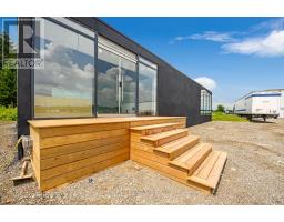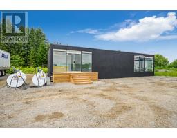 Modern freestanding modular unit offering approximately 1,400 square feet of finished, versatile space. Currently configured as a professional office, this structure presents an excellent opportunity for conversion to a modular home or alternative residential use. The layout features multiple rooms with an open-concept flow, allowing for flexible reconfiguration to suit a variety of needs. The interior includes tile and hardwood flooring, fresh paint, and floor-to-ceiling windows that provide abundant natural light and a bright, welcoming atmosphere. A full kitchen is already installed. Plumbing is not currently connected but can be readily installed to service the kitchen. A portable 3-piece washroom is included with the unit but is not currently connected. The exterior is finished in modern stucco, offering a clean and contemporary appearance. The unit is ideal for buyers seeking a modular structure with potential for residential use, guest accommodation, or secondary dwelling. A unique opportunity to acquire a well-finished modular unit with strong adaptability and future potential. (id:61594)