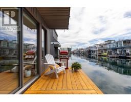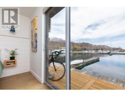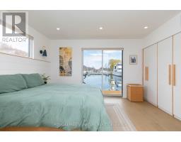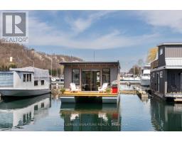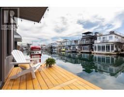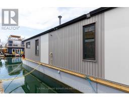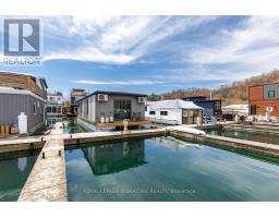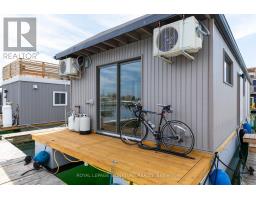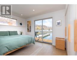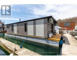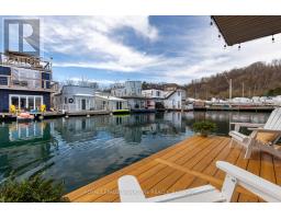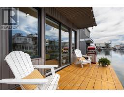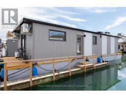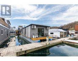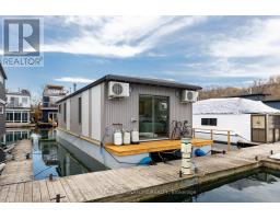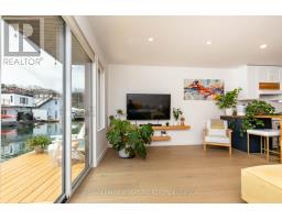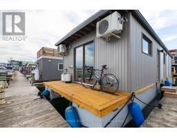 $1,233.77 MonthlyLive close to nature without sacrificing modern comfort and style. Experience the Floating Lifestyle-stylish condo living where nature abounds. Discover comfort and elegance inspired by the serenity of the waterfront. Custom-built in 2022 with over 629 sq.ft of nautical style living on the water! Whiteoak plank flooring, LED pot lights throughout. Open-concept layout with built-in desk, floating entertainment shelving in the living room and a breakfast bar. The pellet stove provides a cozy and warm, easy-to-manage supplemental heat source. The two-tone navy blue lower cabinets and white upper cabinets include Oak counters accented with gold handles, bringing an authentic nautical look to the modern vibe of the place. The White Propane Classic by Unique Stove has an old-fashioned nautical look with a contemporary twist. The Galanz glossy white fridge with matching microwave lends itself to the modern but classic style of a house on the water. The primary bedroom features a built-in White Oak queen bed frame with floating side tables and nautical overhead lamps for nighttime reading. The wall-to-wall closet has loads of storage. The view through the sliding doors overlooking the 65 sqft. The cedar deck is perfect for watching sunrises. The large crawl space storage lets you store your off-season items and water toys without extra cost. The monthly Mooring Fees ($1233), inclusive of the property tax, winter live-aboard fee and HST. (id:61594)