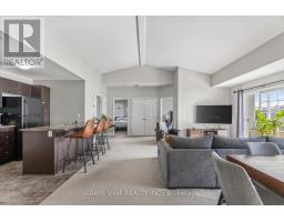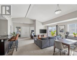 Welcome to 104F Artesa Unit #F! This bright and spacious top-floor 2-bedroom, 2-bathroom condo is the perfect opportunity for first-time buyers, downsizers, or savvy investors. Featuring a stunning cathedral ceiling in the open-concept living and dining area, the space is filled with natural light and offers an inviting atmosphere for everyday living and entertaining.The modern kitchen is equipped with stainless steel appliances and a convenient island with bar seating and sink. The primary bedroom includes a full ensuite for added comfort and privacy. Step outside to a large, south-facing, partially covered balcony overlooking Proudmore Romina Park-ideal for relaxing or hosting, complete with a gas barbecue.Additional highlights include in-suite laundry conveniently located off the kitchen and two included parking spaces. Ideally situated close to public transit, shopping, schools, and parks, this home offers both comfort and convenience in a desirable location. Condo fees : snow removal, landscaping, exterior property maintenance. (id:61594)