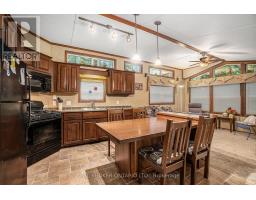 Welcome to 240 Pinewood Park Road #H10, a seasonal retreat tucked within Pinewood Park, a family-owned and operated campground just outside Cobden, Ontario and 14 miles from Renfrew. Set along the shores of Olmstead-Jeffrey Lake in the Ottawa Valley, this property offers the perfect blend of comfort and nature. The spacious trailer features solid wood cabinetry, vaulted ceilings, and an open-concept floor plan with a bright living room and eat-in kitchen. A good-sized bedroom provides a restful retreat, while the large sunroom extends your living space, letting you enjoy the outdoors without the bugs. Relax on the front porch with seating or gather on the second porch with additional seating and a BBQ perfect for entertaining after a day by the lake. High-end finishes throughout add a touch of elegance to this unique escape. All furniture and items (tools, dishes, etc.) are included in the sale. Pinewood Park is known for its family-oriented atmosphere, friendly community, and unbeatable access to outdoor activities, making this a rare opportunity for seasonal living in the heart of the Valley. (id:61594)