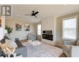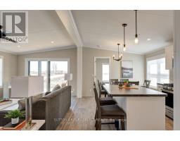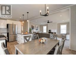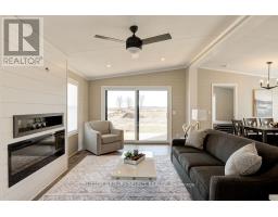 An exceptional Canadian custom-built Northlander manufactured home combines functionality and style on a newly developed lot in this well-maintained community,The Village, just east of Listowel. A 12' x 12' front porch provides opportunities to relax and enjoy the view in this 2 bedroom, 1 bathroom home, with a separate laundry room with a closet for additional storage. An open concept dining, kitchen and living area is illuminated with patio doors, windows and contemporary lighting.The kitchen boasts stunning cabinetry, stainless GE steel appliances, ceramic tile backsplash and an island for extra seating. A spacious living area with a beautiful built in cabinet showcases a fireplace, perfect for cozy winter evenings. Outdoors, there are trails for walking and paved streets throughout the park. The Village lifestyle includes a clubhouse on the premises which provides many social activities, while North Perth/ Listowel areas offers great shopping, golf, curling, a new community arena, delicious dining and cultural experiences. This is carefree, fine living at its best! (NOTE: Land is leased, modular home is owned. Utilize the owner's recommended mortgage specialist if financing is needed.) Live a life of leisure in this friendly, well-maintained community in North Perth's premier park,The Village. Ask about rent on the land lease promotion between now and November 15, 2025. (id:61594)