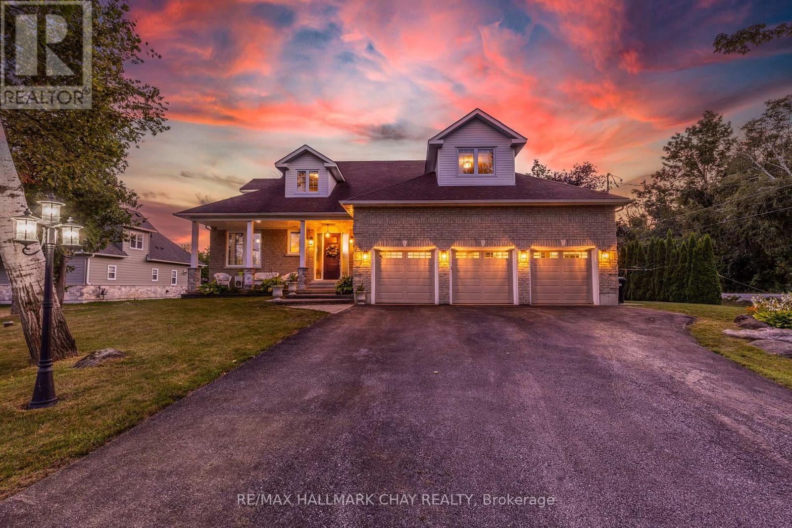 Pride Of Ownership Shines! Nestled on a rare 100 x 150 country lot in a sought-after location just minutes to Lake Simcoe, this custom-built 2-storey brick home offers 2,400 sq ft of finished space above grade plus an unfinished basement ready for your touch. Only 15 minutes to Barrie & 10 minutes to Orillia, it perfectly balances tranquility & convenience. Main floor boasts 9 ceilings, post & beam construction, oak hardwood throughout, and an open concept layout with large windows allowing natural light to flow. Family room features built-in cabinetry & a double-sided Napoleon gas fireplace, seamlessly connecting to a sunken sunroom with French doors & walkout to the backyard. Outdoor entertaining includes a 12 x 40 stained deck, pergola with lighting, glass railings, two sheds, fire pit & private green space. Chefs kitchen offers granite counters, 4-burner gas stove, dishwasher, 2022 LG fridge (ice/water) & a spacious walk-in pantry. Off the kitchen is direct access to the triple car garage, while a main floor powder room adds convenience. Upstairs offers 3 bedrooms with oak hardwood floors & ample closets. The primary suite has a walk-in closet & spa-like ensuite with heated floors, deep soaker tub & separate shower. A dedicated laundry with sink completes the upper level. Updates: 11 KW Generac with automatic DC start-up on natural gas (last serviced May 2025), R-60 attic insulation (2019), owned natural gas water heater, dual sump pumps on separate circuits, 200 AMP electrical, central vac, drilled well with full treatment system (2025), and roof reshingled (2019). Septic service booked for Sept 2025. Triple car garage provides 12-3 ceilings, insulated doors, painted walls & custom cabinetry. One bay with 13-3 ceiling fits a 4-post hoist & air compressor (available separately). Close to Trehaven Golf, regional airport, beaches, marinas & the Oro-Medonte Rail Trail. A rare blend of modern upgrades, country charm & everyday comfort! (id:61594)