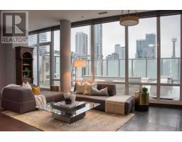 $1,069.20 MonthlyBoasting nearly 2,000 sq. ft. of total living space-with 1,300 sq. ft. indoors and a 600 sq. ft. terrace that blends seamlessly with the main level-this two-storey loft penthouse offers a rare, flowing layout perfect for year-round entertaining and effortless indoor-outdoor living.Welcome to a residence that redefines luxury: a truly one-of-a-kind penthouse and the only suite in the building featuring three skylights, infusing both levels with uninterrupted natural light. With 10-foot ceilings and floor-to-ceiling windows, every room frames dramatic, unobstructed views of the city, lake, and CN Tower, easily one of the very best views downtown. Every detail has been meticulously customized-from the sculptural staircase to the bespoke window treatments and abundant integrated storage-creating a home that is equally refined and functional. The chef-inspired kitchen is outfitted with Wolf and Sub-Zero appliances, designed to elevate everyday living and exceptional hosting.Step onto the expansive terrace, fully equipped with a water line and gas BBQ connection, and experience a true entertainer's haven. From elegant dinner parties to Sunday brunch to quiet nights under the stars, the outdoor space becomes an extension of your lifestyle.Whether it's morning coffee beneath the skylights or evening cocktails against breathtaking city views, this residence transforms the ordinary into the extraordinary. With chic design, rare exclusivity, and unmatched vistas, this 2-bedroom, 3-bathroom penthouse is more than a home-it's a statement of elevated living high above the city. (id:61594)