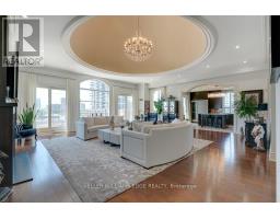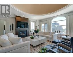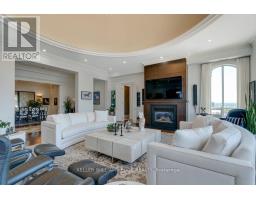 UNCOMPROMISING LUXURY IN DOWNTOWN BURLINGTON - This one-of-a-kind penthouse in an exclusive 13-suite boutique condominium offers 3,017 sq ft of refined living, with four private terraces - each showcasing panoramic views of Lake Ontario and downtown Burlington. Flooded with natural light, the residence features soaring 11-ft ceilings, hardwood and marble floors, and an integrated Bang & Olufsen sound system throughout. Enter through grand double doors into a marble foyer that opens into a spectacular Great Room with a dramatic 21-ft domed ceiling, crystal chandelier, gas fireplace, and walkout to a stunning 30' x 9' terrace. The chefs kitchen is appointed with built-in Miele appliances, custom cabinetry, and island seating, with direct access to a terrace equipped with a natural gas BBQ. A separate formal dining room with elegant chandelier and detailed ceiling mouldings enhances the condos timeless appeal. The first bedroom includes a walk-in closet, 2-piece ensuite, intricate ceiling mouldings, and access to a private terrace ideal as a guest suite, lounge, or office. Down the hall, a second bedroom features a statement chandelier, adjacent laundry room, and access to a designer 4-piece bath with soaker tub. The primary suite is a serene retreat, offering dual walk-in closets, a spa-inspired bath with oversized glass shower and private water closet, a lounge nook perfect for reading or working, and its own private terrace. Includes 2 underground parking spaces and a storage locker. An exceptional alternative to a large home - ideal for those seeking space, privacy, and refined urban living. Just steps to fine dining, boutique shopping, the Performing Arts Centre, Spencer Smith Park, and close to the QEW, 403, 407, and GO. NOTE: Dogs are not permitted. (id:61594)