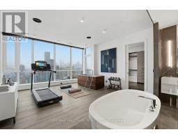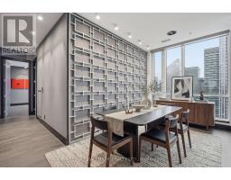 Penthouse 01 at 199 Richmond presents a rare opportunity to own one of only two penthouse residences in this exceptionally well-positioned building within the heart of the entertainment district. This three-bedroom, three-bathroom suite offers a refined layout with thoughtful upgrades throughout, combining clean contemporary design with elevated materials and finishes. The custom kitchen is designed for both function and presentation, featuring built-in Miele appliances, a waterfall island, and a combination of Caesarstone, granite, and quartz surfaces, all anchored within open-concept living and dining spaces that frame expansive city views. The primary suite is positioned as a private retreat, offering generous proportions, a walk-in closet, and a well-appointed spa-inspired bathroom, complemented by a built-in bookcase that adds both character and utility. South and west exposures provide sweeping views across the lake, the Rogers Centre, and Roy Thomson Hall, bringing natural light into the suite throughout the day. Finished with engineered hardwood flooring, marble detailing, and custom vanities, this residence presents a well-executed penthouse opportunity with direct access to the city's dining, cultural, and entertainment offerings just steps from the front door. (id:61594)