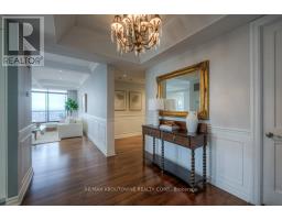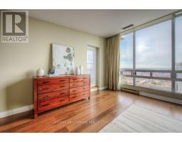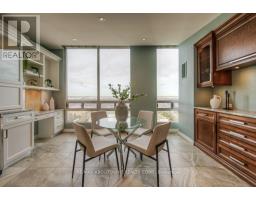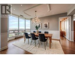 This exceptional penthouse corner suite at Ennisclare II offers breathtaking panoramic views of the Toronto skyline, Lake Ontario, and the Escarpment, from the heart of Bronte. This luxurious 2-bedroom plus den, 2-bathroom suite spans approx. 2,300 sqft of open-concept living space. The spacious living room boasts coffered ceilings, pot lighting, an electric fireplace, and a walkout to a balcony with stunning views of Lake Ontario and the Toronto Skyline. The dining area is bathed in natural light, with floor-to-ceiling windows framing spectacular views of the Escarpment, while the den provides a perfect vantage point of the Toronto Skyline. The custom gourmet kitchen is a chefs dream, complete with granite countertops, a large island, and a breakfast area offering picturesque views of the Escarpment and sunsets. The two generously sized bedrooms combine comfort and style, each with its own walkout to the balcony. The primary suite boasts a massive walk-in closet with custom built-ins, and a spa-like 6-piece ensuite with a soaker tub, glass shower, and double sinks. Additional features include a big utility room, 2 underground parking spots, and a locker. Residents of Ennisclare II enjoy 24-hour security and access to a wide range of top-tier amenities, including an indoor swimming pool, tennis courts, hobby room, gym, billiards room, art room, sauna, squash courts, golf room, party rooms, and a clubhouse overlooking the lake. This is the place to be in all of Oakville... steps from the lake, shopping, and restaurants! Check out the virtual tour and book your appointment today. (id:61594)