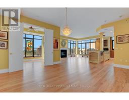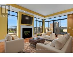 Penthouse Luxury in the Heart of Downtown Ottawa. Welcome to The Lanesborough, a prestigious Domicile-built residence in the heart of downtown Ottawa, completed in 2004. This spectacular Penthouse (PH2) is a rare offering that blends sophisticated design with downtown convenience. From the moment you step inside, this bright corner unit will impress with its soaring 10-ft ceilings, expansive 1515 sq/ft layout, and stunning wrap-around terrace offering downtown views of the city skyline. Thoughtfully designed for both comfort and entertaining, this unit features 2 spacious bedrooms, a full-sized den and 2 full bathrooms. The open-concept kitchen is a chef's dream, showcasing custom cabinetry, granite countertops, a gas range, and seamless flow into the elegant living area, complete with a cozy gas fireplace. Step outside to the sprawling terrace, where you'll find multiple seating areas and gas hook-up for bbq, creating your own private urban oasis. Direct access to the terrace can be entered through the primary bedroom, den and living room and includes the following: Gas bbq, storage shed, planters and existing outdoor patio and bistro sets. The primary bedroom retreat offers double closets, and a luxurious 3-piece ensuite. The den is ideal for a home office or media room. The second bedroom with california shutters and ample closet space is conveniently located adjacent to the main full bathroom, making it perfect for guests or family. Additional features include: new hardwood flooring throughout, laundry/storage room with built-in central vacuum, 2 underground parking spaces and 1 storage locker. The building offers the following amenities: Two elevators, a party room and bike storage. Situated just steps from the ByWard Market, Rideau Centre, Ottawa University and everyday essentials like grocery stores and transit. Flexible occupancy available. Your downtown Ottawa penthouse lifestyle awaits you! 24 hrs irrevocable on all offers. (id:61594)