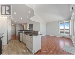 Must see - rare exceptional offering: a true 3 bedroom / 2 full bathroom penthouse which stands in a class of its own. This pristine corner top floor suite with wrap around deck feels like a bungalow in the sky. The customized living spaces with vaulted ceilings bring drama & volume into every room. Great room - living, dining & kitchen surrounded by windows create a fabulous entertaining space - opening onto the 400+ sq ft terrace. Calling chefs & gardeners! The custom high-quality kitchen (quartz counters, stainless appliances, glass backsplash) is designed with pot drawers, pantry, an island, custom storage spaces & showcase tower. The bathrooms feature built-in storage, one with jet tub and one with shower. Light fixtures have been upgraded to LED pot lights on dimmers. New dual HVAC mini split (prog b/board heat still in place). The secondary bedroom includes a rich built-in desk and Murphy bed, providing exceptional flexibility. Bedrooms have big closets and several have mirrored doors. Enjoy the seasons from your private terrace (new decking) with northeast view which is partially covered, hose bib hookup, dramatic sunrises & sunsets, & sweeping views of the Gatineau hills, Ottawa river at St. Patrick St bridge, overlooking beautifully treed surroundings. This unit also has a large private locker conveniently located immediately above unit, and one underground parking space. The complex features gorgeous gardens, visitor parking; the resort lifestyle amenities include large salt water pool, sauna, gym, party/meeting rooms, library, on-site management & superintendents - plus convenience store, personal services shops such as nail, hair and barber studios, cleaning service, & computer firm. Situated within blocks of Beechwood shops, Riverain Park & Rideau River biking trails & tennis club, bridge to Sandy Hill, & immediately adjacent to two grocery stores & public transit at the door. Make a statement! Discover downtown living at an affordable price! (id:61594)