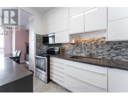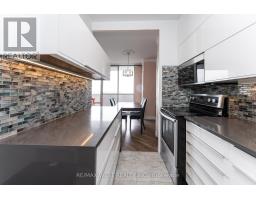 $692.32 MonthlyPenthouse corner unit offering 978 sq ft of well-appointed space in Crescent Town, just steps from Victoria Park Station. This 2-bedroom, 1-bath condo features 9-foot ceilings, crown mouldings, and upgraded flooring throughout. The kitchen has been updated with quartz countertops, a waterfall island, glass tile backsplash, and a farmhouse-style sink. Pot lights provide ambient lighting across the open-concept living and dining area, which leads to a private balcony with expansive views of the lake and golf course. The primary bedroom includes a walk-in closet with custom organizers. Additional conveniences include ensuite laundry and a walk-in pantry. Residents enjoy complimentary access to an on-site club featuring pools, squash and racquetball courts, a gymnasium, and multipurpose rooms. Building amenities also include two daycares. With direct subway access via an elevated walkway, nearby parks, schools, shopping, and Dentonia Park Golf Course, this unit offers generous living space in a connected and established community. (id:61594)