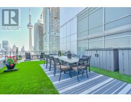 Waterfront Two- Storey Penthouse with Unmatched Private Terrace City skyline views at 25 Telegram Mews, offering breathtaking skyline views and a spectacular 777 sqft TRUE terrace designed for entertaining or enjoying stunning sunsets over Lake Ontario. Positioned just steps from the vibrant Harbourfront, this residence provides easy access to Queens Quay boat slips and the marina, perfect for those who love to set sail or enjoy the waterfront lifestyle. Includes 2 side-by-side parking + 1 locker. Meticulously rebuilt condo boasts luxurious Calcutta quartz counters, full-size stainless steel appliances, and stylish glass staircase leading to the upper level. Both primary bedrooms feature elegant ensuite baths with rainfall showers, while two additional balconies offer the ideal spots for morning coffee with a view. The suite is outfitted with ambient ceiling lighting, fully automated blinds, and refined pot lights, creating an atmosphere of sophistication and comfort. The building itself is a statement of exclusivity, featuring a private high-rise lobby with contemporary updates, three dedicated express elevators, and 24-hour security with fob-access to each floor. Residents enjoy exceptional amenities, including a full size heated saltwater indoor pool, a luxurious 10-person hot tub, and direct access to the onsite Sobeys grocery store. Additionally, the underground parking offers both paid and free guest spaces, while this unit includes two side-by-side parking spots next to a locker for added convenience. Just across the street, Canoe Landing Public & Catholic School (JK-Grade 8) and the recreation center offer excellent community access. With the Spadina streetcar connecting directly to Union Station and the UP Express to Pearson Airport, commuting couldn't be easier. Plus, the Gardiner Expressways westbound entrance off of Spadina is right at your doorstep. Experience the perfect blend of luxury, convenience, and waterfront access in this stunning penthouse (id:61594)