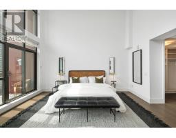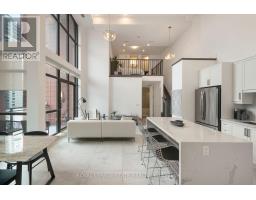 Welcome to a rare opportunity to live in one of the citys most iconic addresses. This spectacular penthouse level loft redefines elevated living with 18-foot ceilings, soaring two-storey windows and an open concept layout filled with natural light. Motorized blinds and striking architectural lines create a bold yet elegant feel. The chefs kitchen is a true showpiece, featuring quartz waterfall countertops, matching backsplash, large-format floor tiles and premium stainless steel appliances including fridge, stove, dishwasher, and hood vent. A separate den off the kitchen provides the perfect space for a home office or creative nook. The private primary suite offers its own balcony, a generous walk-in closet, and a spa-like ensuite with a soaker tub and separate glass shower. Upstairs, the lofted second bedroom includes another walk-in closet, full ensuite and an overlook railing that enhances the airy, open vibe. Additional conveniences include in-suite laundry (stacked washer/dryer), one underground parking space and two storage lockers. Located in the heart of downtown, you're just steps from top restaurants, bars, boutiques and cultural hotspots like the Art Crawl. Proximity to McMaster University, hospitals, and transit adds to the appeal. Whether hosting friends or enjoying a quiet moment on one of your two balconies, this stylishly designed space is made to impress. (id:61594)