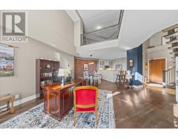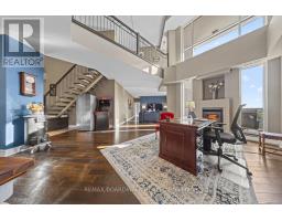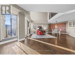 Welcome to the Penthouse at The Opus - where exceptional square footage meets sophisticated downtown living. Square footage of this scale is nearly impossible to find in today's condo market! This rare offering has 2250+ sq. ft. of bright, south-facing living space. The inviting foyer opens to an impressive 2-storey living room with open riser staircase, ornamental ironwork, and floor-to-ceiling windows drawing in natural light. The open-concept kitchen features off-white cabinetry, granite counters with bar seating, excellent prep space, and clear sightlines to the living and dining areas. The dining room comfortably fits 6-10 guests, ideal for entertaining. The current living room (used as one of two home offices) includes a gas fireplace and access to a private balcony overlooking the gardens and rooftops. A second large flexible room on the main level can function as a family room, closed den, or optional 3rd bedroom. A generous secondary bedroom and full 4-piece bathroom complete this floor. Upstairs, the loft awaits, offering the best views in the home - perfect as a home office, studio, gym, or creative space. Laundry and utility rooms are conveniently located off this level. The Primary Suite includes a walk-in closet and a spacious 5-piece ensuite with soaker tub and double-sided fireplace shared with the bedroom. Ample room for a king-sized set. The unit includes one underground parking space, one locker, and two bicycle spots. Building amenities include a fitness room, party room with kitchen, library, guest suite, and five visitor parking spots. Exceptional location: seconds to the 417, two blocks from the Rideau Canal, and walking distance to both downtown and the Glebe. Urban convenience and executive elegance come together in this rare offering at The Opus. A penthouse offering true space, natural light, and flexibility - this is downtown living without compromise. (id:61594)