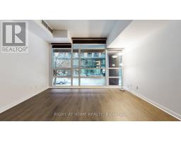 Rarely offered two-storey condo townhouse in the sought-after Fort York/Waterfront neighbourhood. Move-in ready and beautifully maintained. Freshly painted and professionally deep-cleaned, this bright 1+den layout features two full bathrooms and a private patio, perfect for morning coffee or evening downtime. This condo features high ceilings and floor-to-ceiling windows, creating an open feel for everyday living and entertaining. Enjoy the flexibility of a true den that can function as a second bedroom with a custom built-in Murphy bed. The home offers two convenient entrances (street-level and through the building), a tiled building entryway, an open-concept kitchen, and laminate flooring throughout. Notable updates include a new thermostat and heat pump (2021) on the ground level. You'll also love the practicality of your parking spot and locker on the same level, just steps away from the elevator. Well-managed building with semi-annual CAC filter changes, exterior window cleaning once a year, and patio snow/leaf clearing. Amenities include a rooftop patio with BBQ, a guest suite available to rent, bike storage (additional fee), fibre internet availability, and an EV charging station planned within the next year. A contemporary mid-rise with a boutique feel. Moments to Lake Ontario, Harbourfront Centre, transit, shops, dining, entertainment, art galleries, and the Financial District. (id:61594)