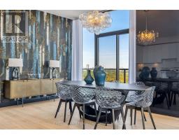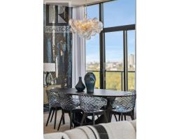 $1,439.60 MonthlyWelcome to this stunning southeast corner upper penthouse in the heart of Leaside, boasting sweeping city views, 10-ft ceilings, and floor-to-ceiling windows. Enter through diamond-patterned tile and a custom granite archway into the expansive great room, featuring custom fluted millwork, open shelving with Christian Lacroix wallpaper, and four seamlessly integrated frameless TVs. The south-facing balcony is perfect for entertaining, while the dining room offers a separate balcony and another Lacroix feature wall. The custom Trevisana kitchen dazzles with Calacatta marble counters, Miele appliances, a 5-burner gas cooktop, and breakfast bar seating. The primary suite includes a private balcony, walk-in closet, and spa-like 6-pc ensuite. A guest bedroom offers its own walk-in closet and 3-pc ensuite. With black granite archways, glass walls, Calacatta finishes, and elegant hardware throughout, this home is a true slice of heaven in the sky. (id:61594)